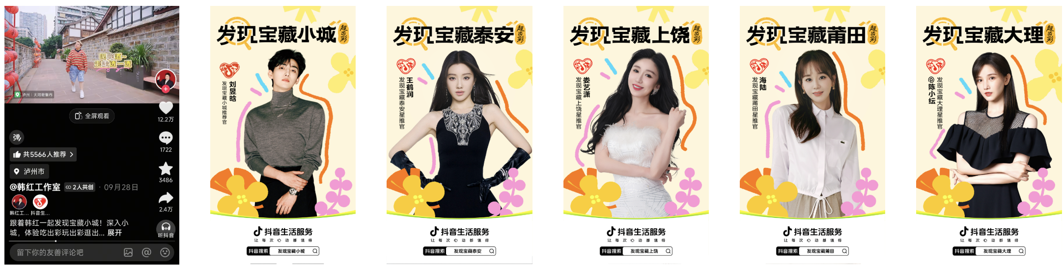 在精准为小城“调色”,成功吸引大众目光之后,一系列由明星与达人共同参与的深度体验内容,进一步将“宝藏小城”的魅力具象化。作为「发现宝藏小城-超出彩」代言人,韩红走进泸州,用声音串起一程亲历感十足的老城漫游。酒糟翻晒声中,68度的原浆酒醇香诱人;叫卖迭起,老泸州大河街的市井气鲜活无比;锅碗碰撞,端上的是当地嫁娶常见的“三蒸九扣”九大碗,这本以耳代眼的“声音攻略”,让不少人心动不已,直呼“想马上出发”。此外,刘昱晗担任“发现宝藏推荐官”,王鹤润、海陆、陈小纭、娄艺潇等艺人纷纷化身“发现宝藏小城星推官”,为泰安、莆田、大理等小城热度加持。