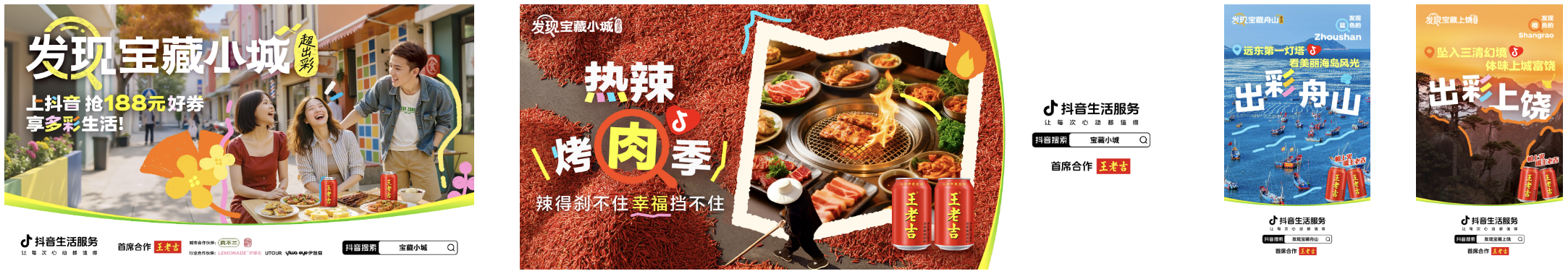 此次发现宝藏小城的活动中,天然植物饮料品牌王老吉作为首席合作伙伴,深度参与了抖音生活服务“发现宝藏小城”活动,携手六大餐饮品牌聚焦烤肉、火锅等辣味场景,强势塑造“吃辣绝配王老吉”的消费认知。通过线下互动陈列与畅饮体验,王老吉以清凉口感强化“怕上火,喝王老吉”的佐餐心智,成功激活“就要辣么爽”的消费氛围。