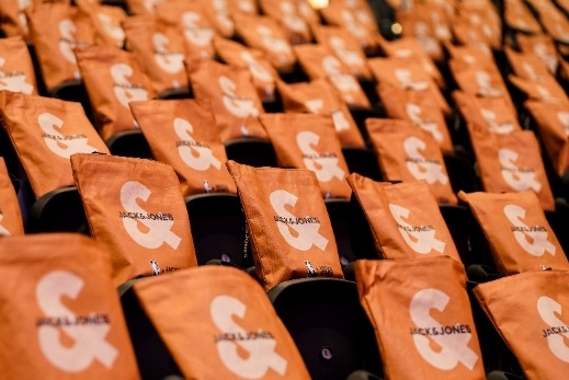 JACK & JONES作为NBA中国赛2025官方合作伙伴,全方位参与并赋能本次赛事。赛事现场,品牌视觉贯穿场馆各处。观众席上整齐摆放着印有品牌标识的橙色购物袋,赛场四周电子环屏及赛事大屏均融入了JACK & JONES的视觉设计,共同构成了独特的赛事场景。融合篮球竞技与时尚文化,为现场球迷带来了运动与潮流相结合的观赛体验。