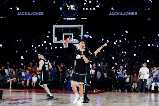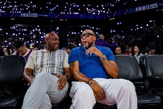 主办方于10月11日,在赛事期间举办了NBA球迷日活动,NBA传奇巨星沙奎尔·奥尼尔、知名歌手姜涛及说唱歌手欧阳靖等嘉宾亲临现场,与球迷进行互动交流。同时,JACK & JONES也向观众赠送了 NBA中国赛2025限量T恤等品牌礼品。观众积极参与互动环节,现场气氛热烈。