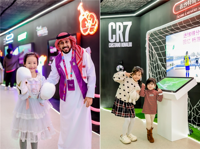 特别设置的体育互动区同样人气高涨,游客可在此与C罗弹跳数据一较高下,体验F1极速挑战,感受沙特作为国际体育赛事举办地的活力。