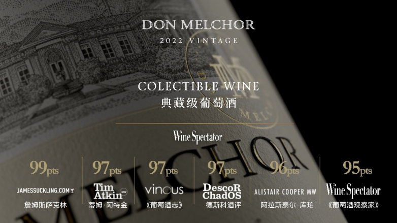 一款佳酿:智利风土孕育的典范力作魔爵2022年份刚刚显露锋芒便获得赞誉无数,先后斩获多家权威酒评机构的高分肯定:不仅获得詹姆斯·萨克林(James Suckling)99分近乎满分的肯定,也在《饮料商业》(The Drinks Business)中拿下99分,被侍酒师大师帕特里克・施密特称赞表现卓越。此外,魔爵2022年份收获蒂姆·阿特金(Tim Atkin)的智利2025年度报告获评97分、《葡萄酒志》(VINOUS)获评97分以及《葡萄酒观察家》(Wine Spectator)获评95分的高度评价,专业葡萄酒机构一致认为这款酒结构均衡、风味深邃,具备极强的陈年潜力与收藏价值。