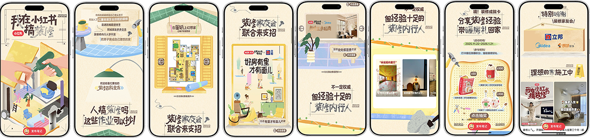 基于对用户装修需求的深度洞察,小红书家居垂类以2025年装修旺季节点为切口,精准锁定新装修、新改造需求人群,发起#我在小红书搞装修 长线IP。以用户装修时间线为核心脉络,拆解不同阶段的痛点需求与实用干货,通过内容、品牌与用户的深度联动,为当代装修人量身定制更全面、更落地的「装修实用指南」。