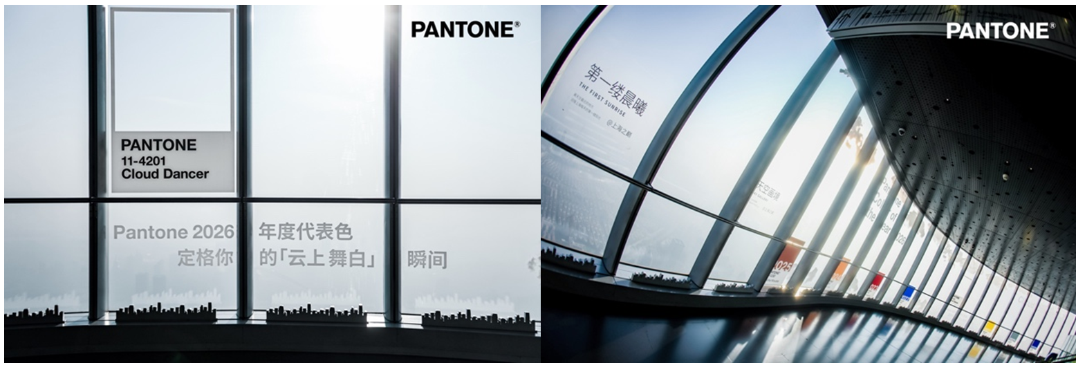 2025年12月11日,上海 —— 全球专业色彩机构 Pantone 选址上海中心大厦,举行Pantone 2026年度代表色发布会。作为上海地标级建筑、中国第一高楼,上海中心大厦拥有高空云端的通透意境,与Pantone 2026 年度代表色PANTONE 11-4201 云上舞白(Cloud Dancer)的缥缈澄澈完美呼应,相映成景。