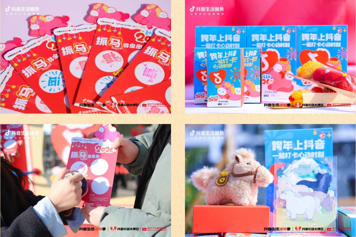 在线下体验端,下沙奥莱则精心策划了一场为期6天的跨年嘉年华。活动结合马年IP「小粉马」,以“《Horse发生》跨年上抖音,一起打卡心动时刻” 为主题,将商场打造为杭州跨年的网红目的地。