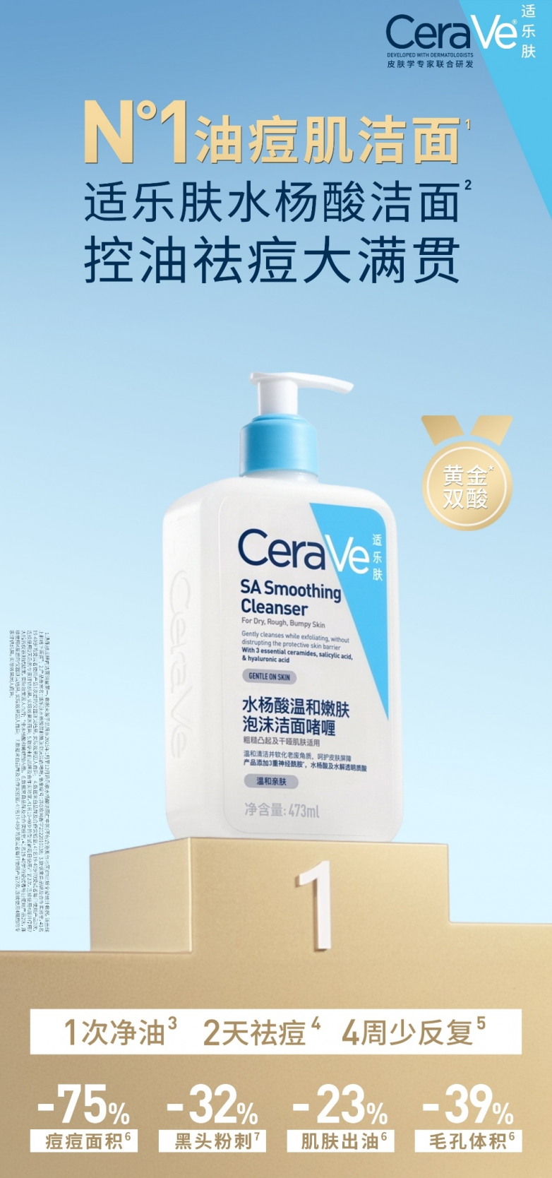于此同时,品牌旗下专为油痘肌研发的适乐肤水杨酸洁面迎来全面功效革新。精研黄金双酸,以全球科学研究和临床试验为支撑,实证源头击溃油痘难题,减少出油、痘痘、黑头粉刺、粗糙、毛孔、泛红,并保护皮肤屏障不受损。以1次净油,2天祛痘,4周少反复的高效表现,持续夯实在油痘肌清洁领域的领先地位。