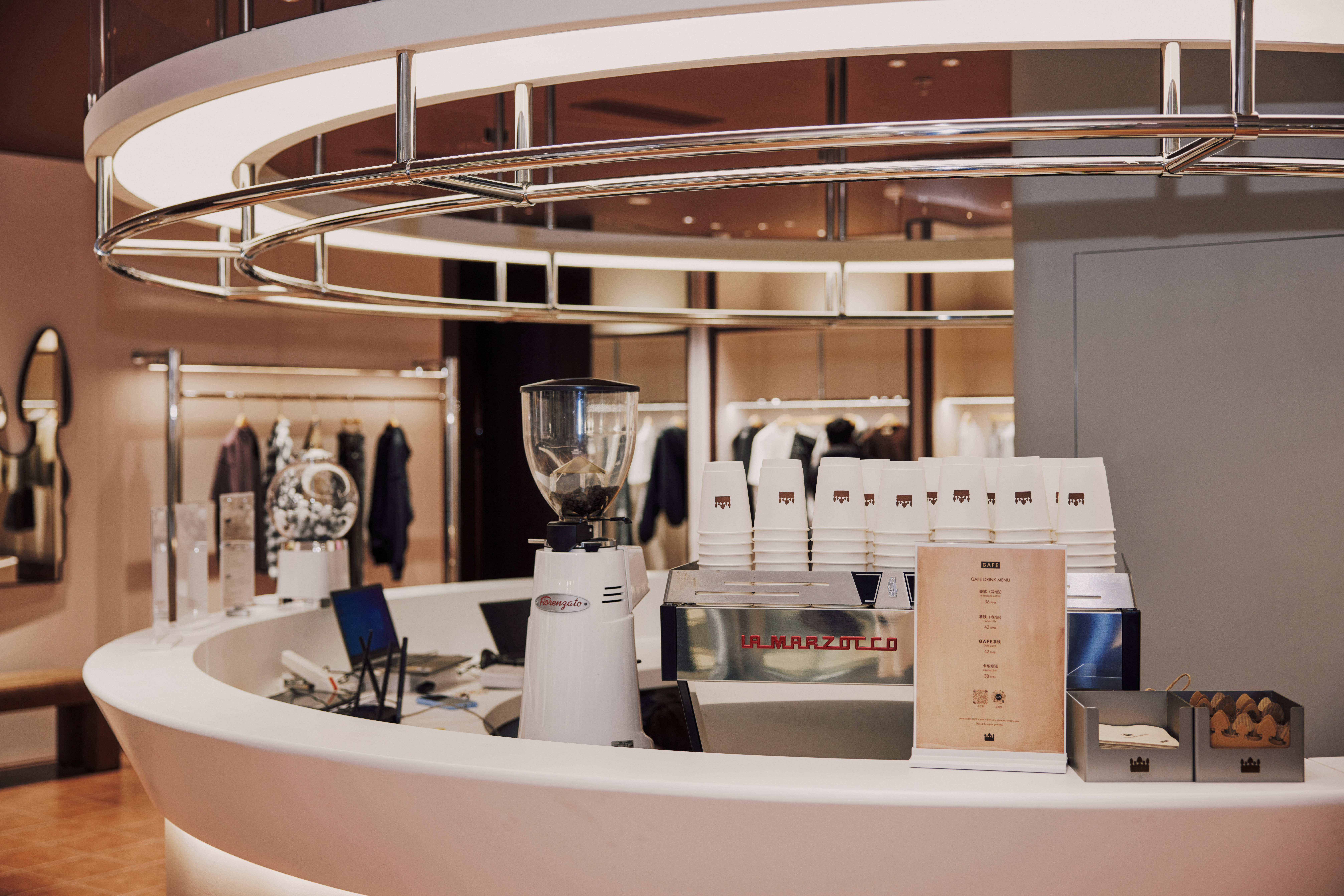 如果说其他快闪店的核心是 “卖衣服”,那 GAFE 的核心绝对是 “让玩家开心”!为深化“玩家”体验,让 “入场即玩” 不只是口号,品牌在空间中央设置了圆形中岛咖啡吧台,把品牌文化基因融进咖啡里 —— 不用点单、不用排队,只要你是进店的 “玩家”,就能免费 get 一杯香气与浓度完美平衡的品牌专属咖啡。