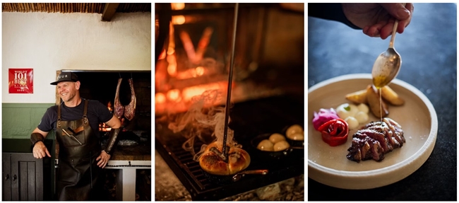 位于Remhoogte葡萄酒庄园的VUUR,名字在南非荷兰语中意为“火”。主厨Shaun Scrooby以明火烹饪闻名,坚持“火是唯一的烹饪方式”,每道菜都经由开放式火焰、余烬和烟熏完成。这里不设固定菜单,厨师在明火旁烹饪并讲述背后故事,为食客带来一场关于火、食材、文化与人的沉浸式体验。