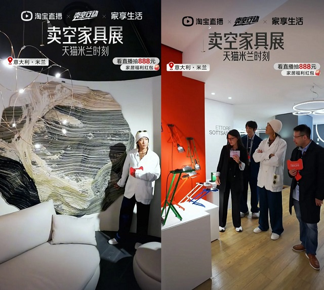姜思达则实地探访了 Baxter、NATUZZI、Moooi、FLOS、Artemide、kartell 等品牌旗舰店展区,亲身体验重磅新品,在淘宝直播卖空行动直播间向大家讲述。